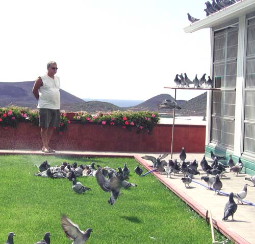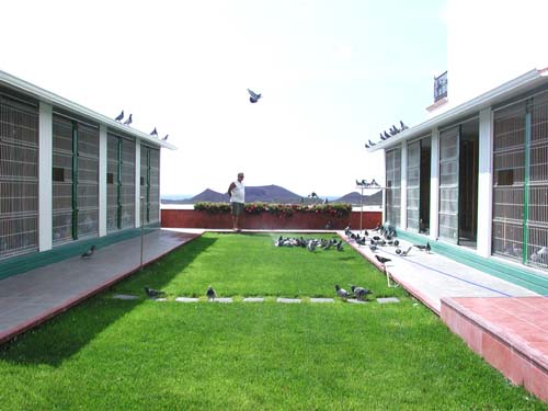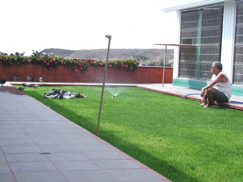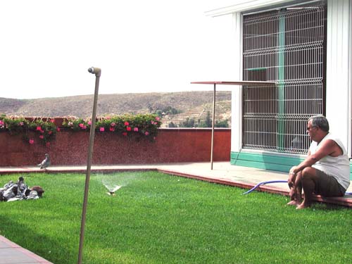 Guillermo goza de su hembra pinta, y disfruta a 2 metros de ella cuando se baña. Este es uno de los momentos mas felices para él. Ver su paloma con una salud envidiable, mansita, bañándose y disfrutando ante su dueño.