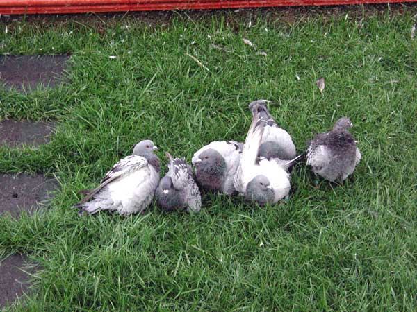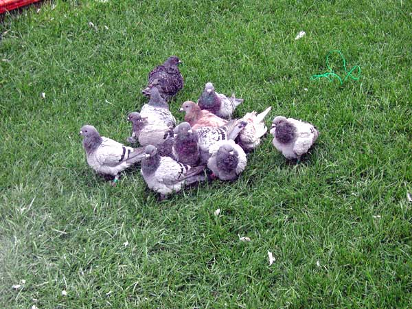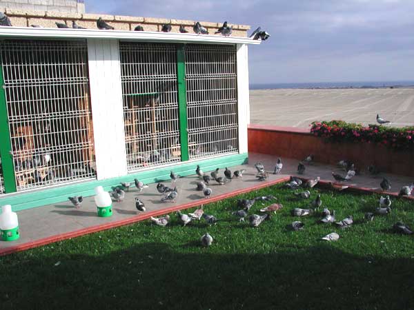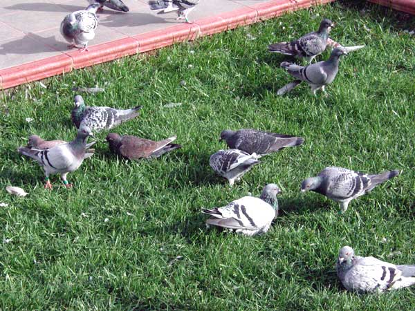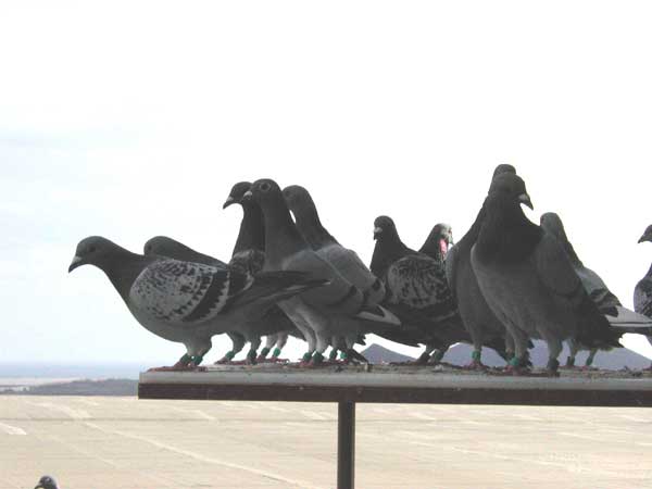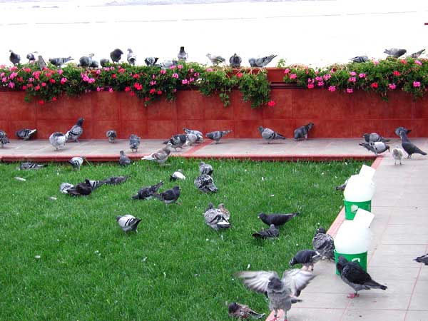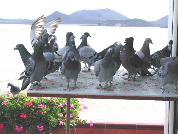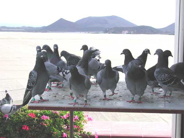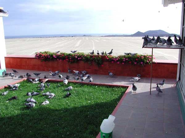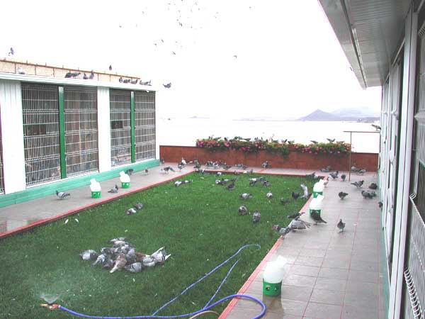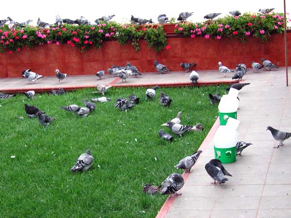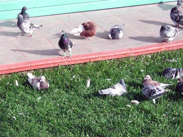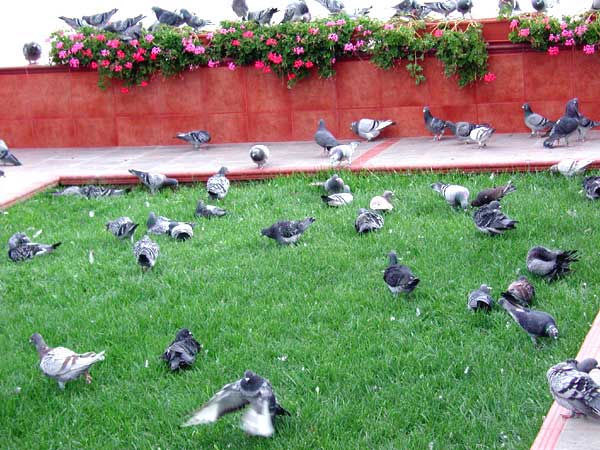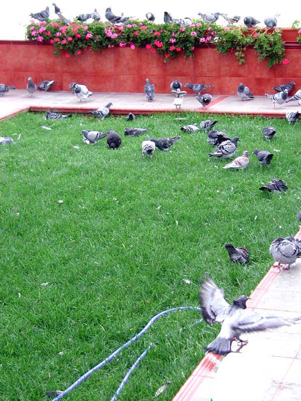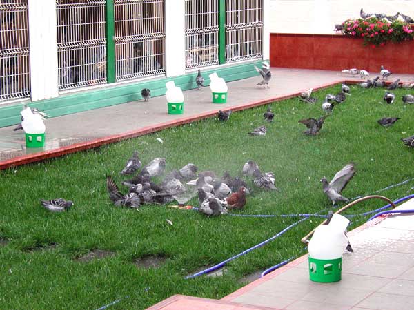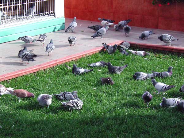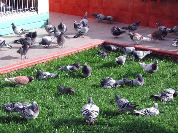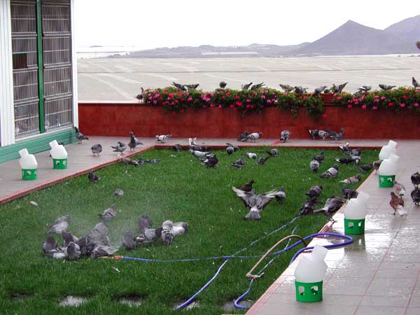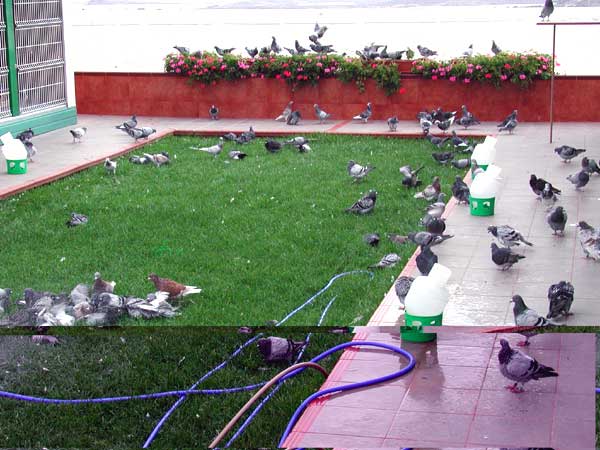 Las palomas bañandose y retozando en los exteriores