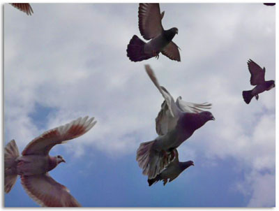 De repente, un bando de unas 50 palomas!. Bajó una muy rápidamente al