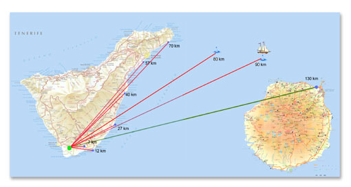SEGUNDA suelta a 27 Km. de distancia desde el faro del Porís de Abona. La suelta se ha efectuado
