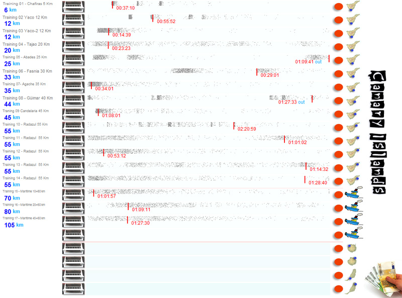 | 05/02/09[12:00:00] | Traning 09 Candelaria 45 Km | 13:08:01 | 01:08:01 = 667 m/m | 1108 | 412 | W | 26Km/h | 18º |