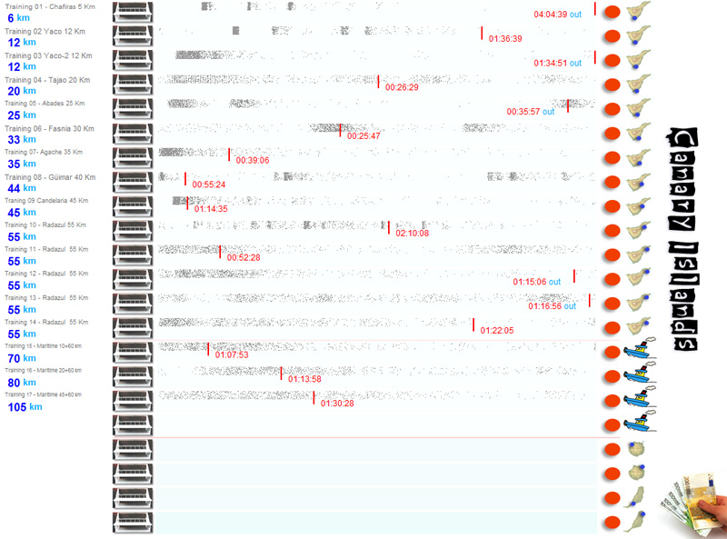 | 03/02/09[12:45:00] | Training 08 - Güimar 40 Km | 13:40:24 | 00:55:24 = 795 m/m | 1137 | 170 | W | 27Km/h | 18º |