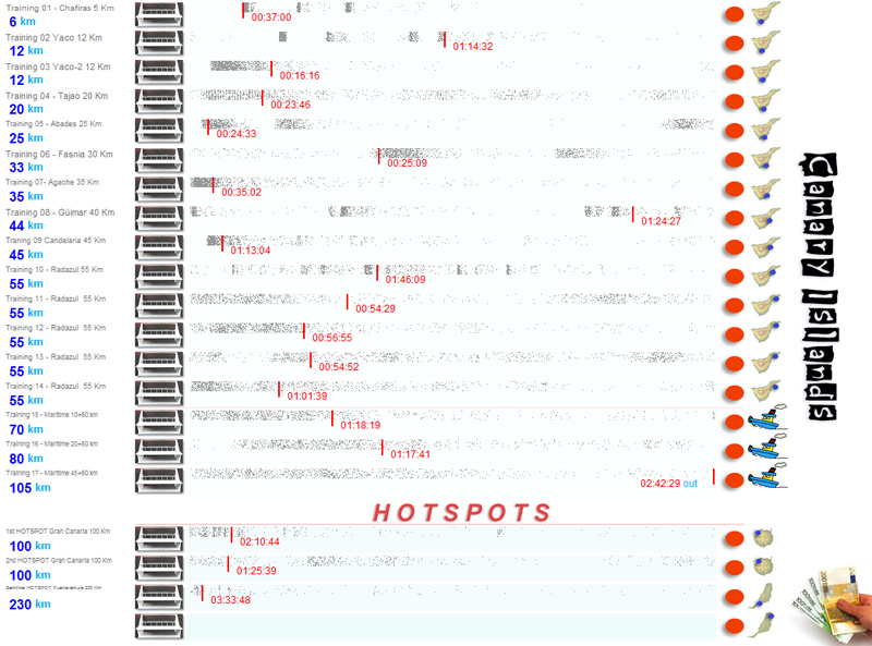 | 27/03/09[07:45:00] | Semifinal HOTSPOT Fuerteventura 230 Km | 11:18:48 | 03:33:48 = 1067 m/m | 496 | 56 | NW | 14Km/h | 17º |