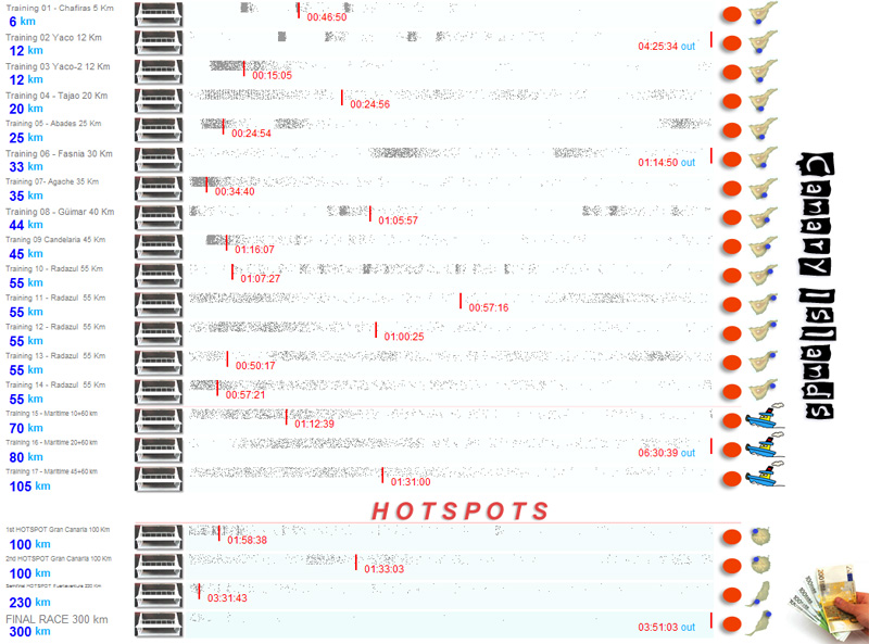 | 21/03/09[08:00:00] | 2nd HOTSPOT Gran Canaria 100 Km | 09:33:03 | 01:33:03 = 1032 m/m | 535 | 273 | NNE | 25Km/h | 19º |