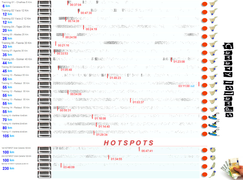 | 15/03/09[07:45:00] | 1st HOTSPOT Gran Canaria 100 Km | 14:32:41 | 06:47:41 = 235 m/m | 997 | 432 | NE | 28Km/h | 26º |