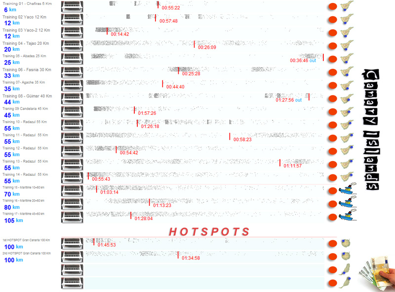 | 15/03/09[07:45:00] | 1st HOTSPOT Gran Canaria 100 Km | 09:30:53 | 01:45:53 = 907 m/m | 997 | 104 | NE | 28Km/h | 26º |