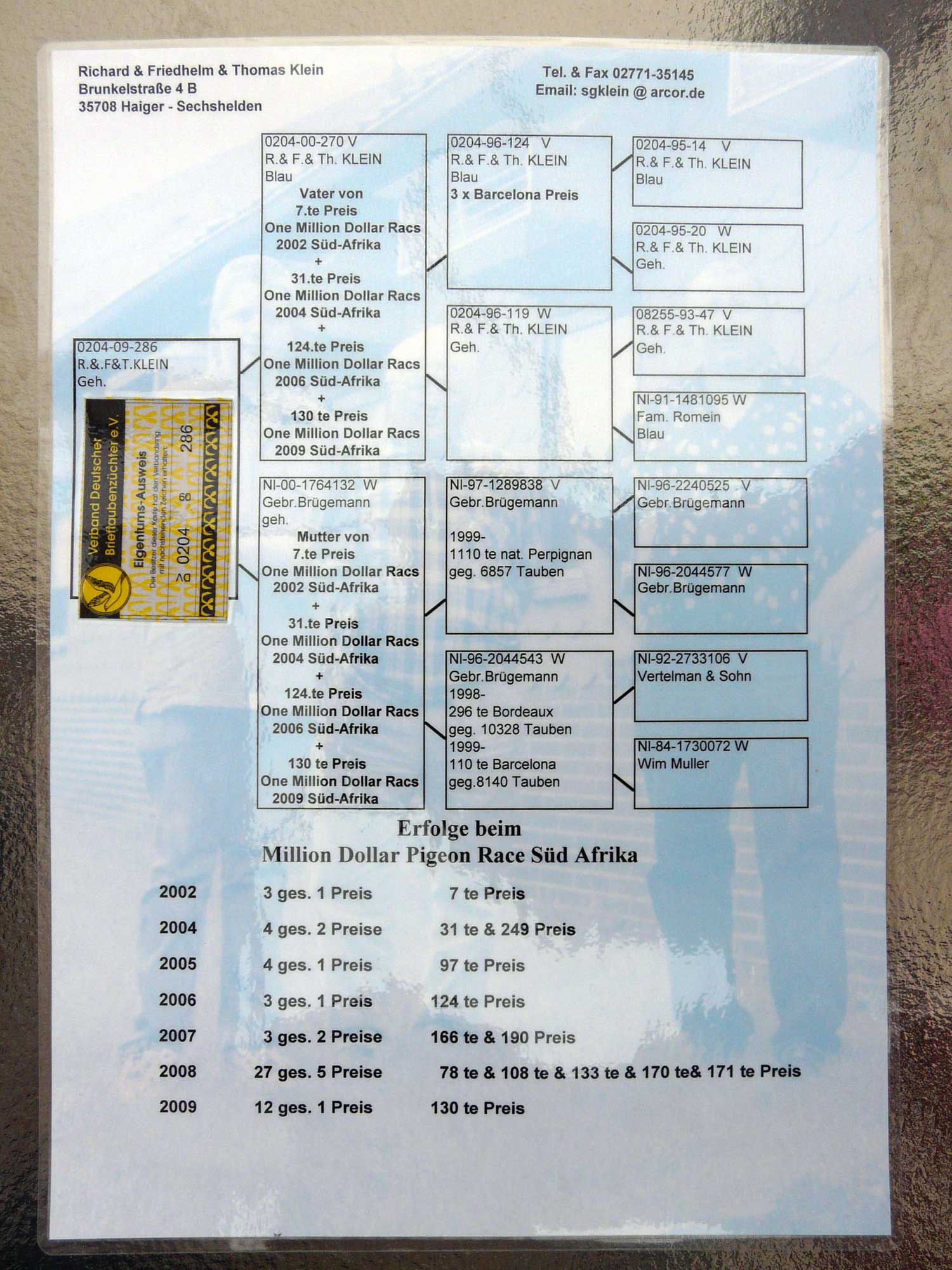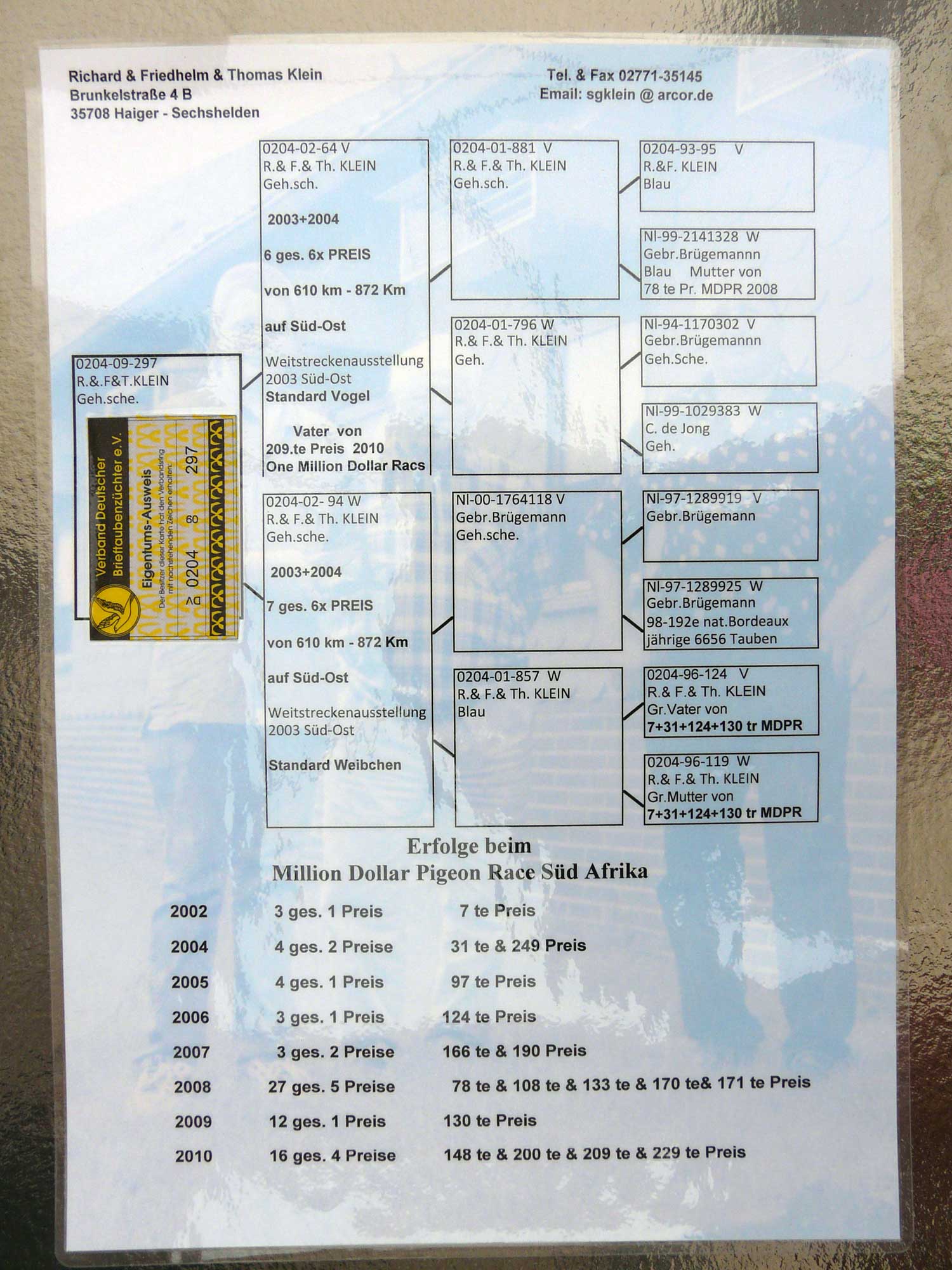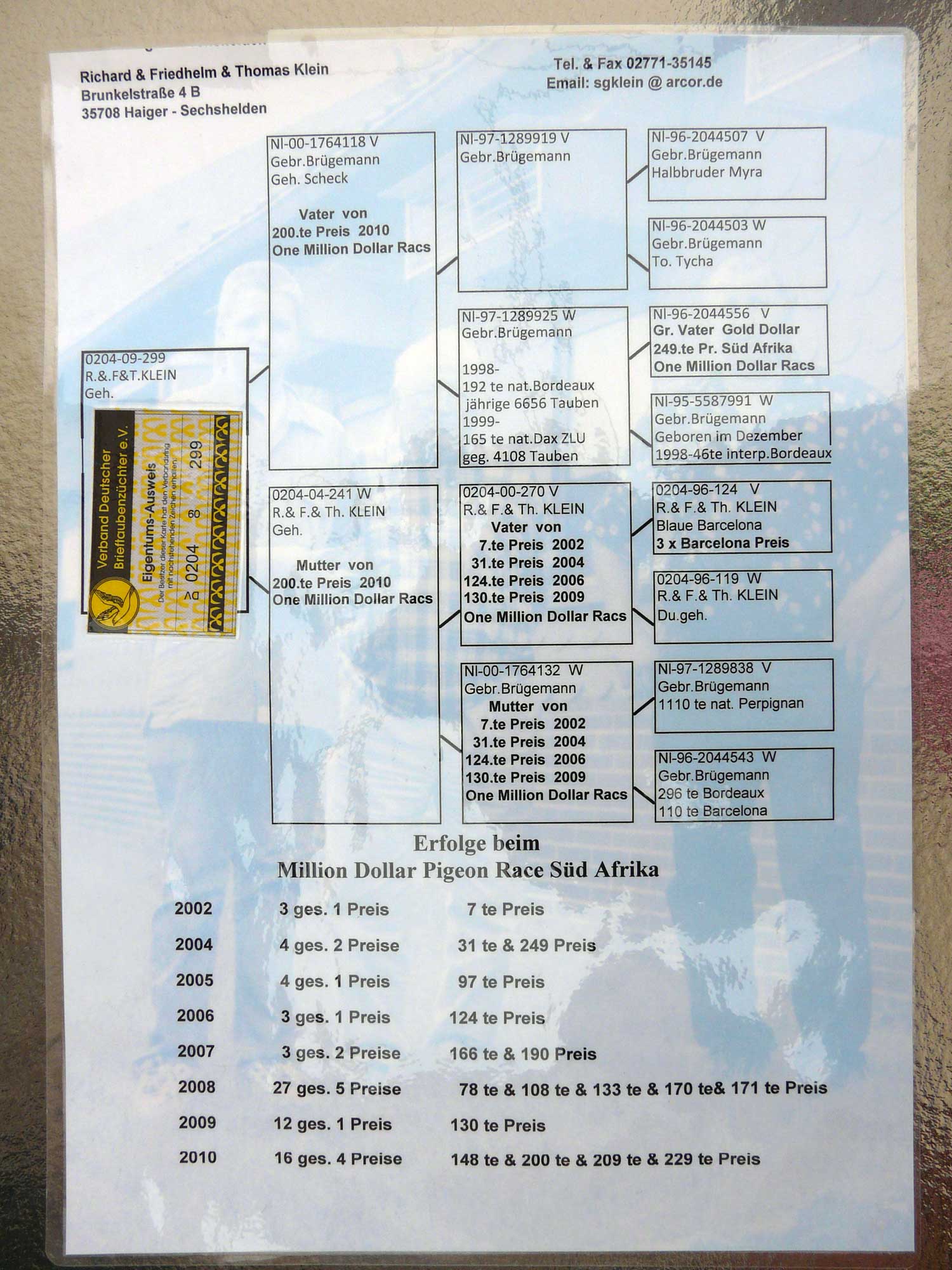 | Date / Time (Fecha / Hora) | Race (Concurso) | Arrival (Llegada) | Time / Speed (Tiempo / Vel) | Pigeon sent (Soltadas) | Classification | WD | WS | TE | Sky (Cielo) |