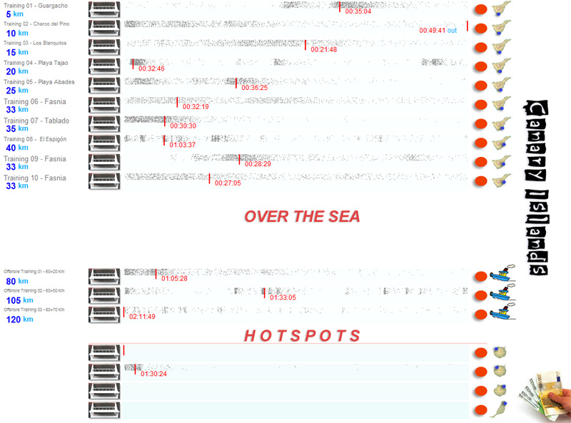 | 05/01/10[12:30:00] | Training 05 - Playa Abades | 13:06:25 | 00:36:25 = 701 m/m | 1332 | 786 | NW | 22Km/h | 19º |