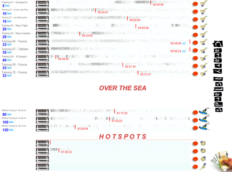 | 05/01/10[12:30:00] | Training 05 - Playa Abades | 13:04:59 | 00:34:59 = 730 m/m | 1332 | 488 | NW | 22Km/h | 19º |