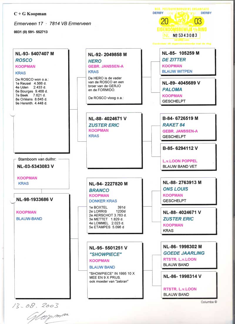 “ EVOLUTHION “ 1º Paloma As Nacional 2000 en Holanda.